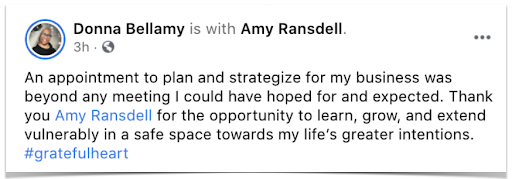 If you're looking to seriously take your business to the next level trust me you NEED Amy Ransdell. Amy helped me quickly uncover things I was doing that were wasting my time. We uncovered a number of things I could tweak, she helped me gain amazing insights, and inspired innovative ways to leverage my business. I have no doubt I will at least double, maybe triple my revenue in the next 30 days. I can't recommend her enough.